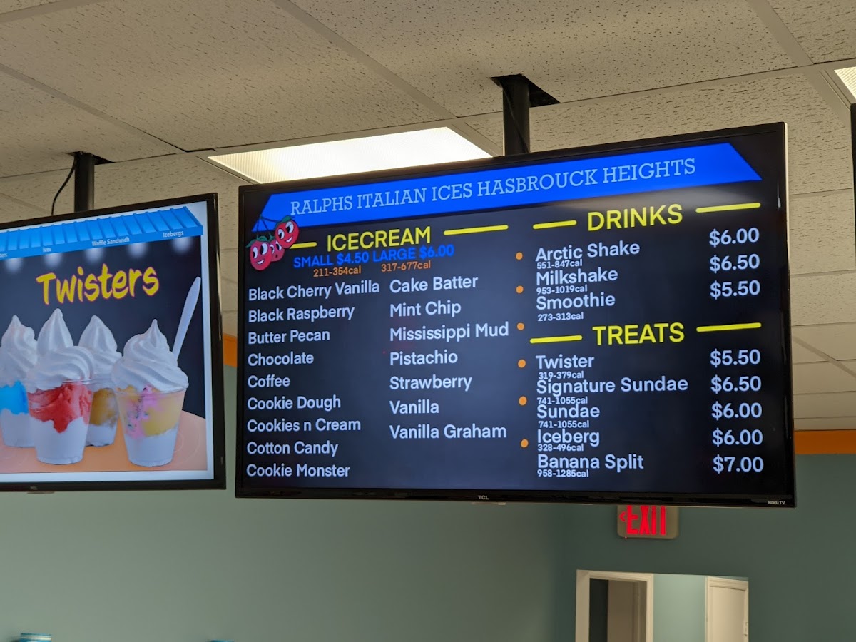 Ralph's Famous Italian Ices & Ice Cream at 239 Boulevard, Hasbrouck Heights, NJ, offers a menu that feels both nostalgic and indulgent, perfect for anyone with a sweet tooth. Their Homemade Ice Cream comes in Small, Large, Pint, and Quart sizes, providing flexibility for single servings or family treats. Fans of creamy desserts will also enjoy the Italian Cream Ice and Italian Water Ice, available in Small, Medium, Large, Pint, and Quart portions. The Signature Sundaes-including Black Cherry Crunch, Peanut Butter Crunch, Hot Fudge Brownie Chocolate Chip Cookie, and Marshmallow Crunch-offer rich, layered flavors that make each visit feel special. For something lighter or refreshing, the menu features Smoothies such as Strawberry Margarita, Strawberry Banana, Cherry Bomb, Strawberry, and Lemonade, while the Arctic Shake options-Ralphaccino, Ralphaccino Mocha, Ralphaccino Latte Caramel Latte, and Tripple Chocolate Ralphi-deliver a fun, creamy twist on classic beverages. Traditionalists can savor Milkshakes, either regular or topped with whipped cream, and those looking for playful combinations will find delight in Ralphs Treats like Iceberg, Twister, Ralphie Sandwich, and Banana Split. Finally, the Doughnado's, including Chocolate Chunk, Birthday Cake, and Peanut Butter, round out a menu that balances classic ice cream parlor staples with inventive treats, ensuring there’s something for every craving.